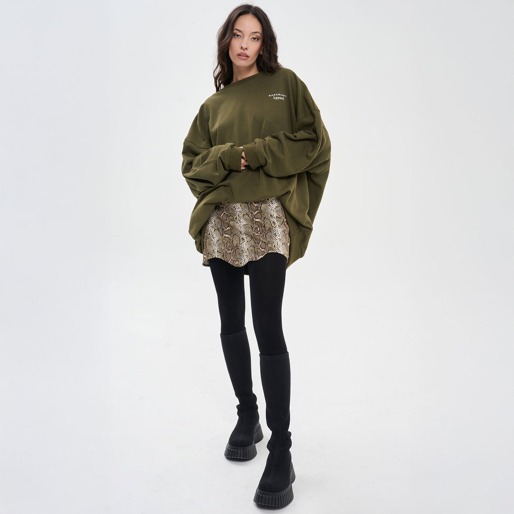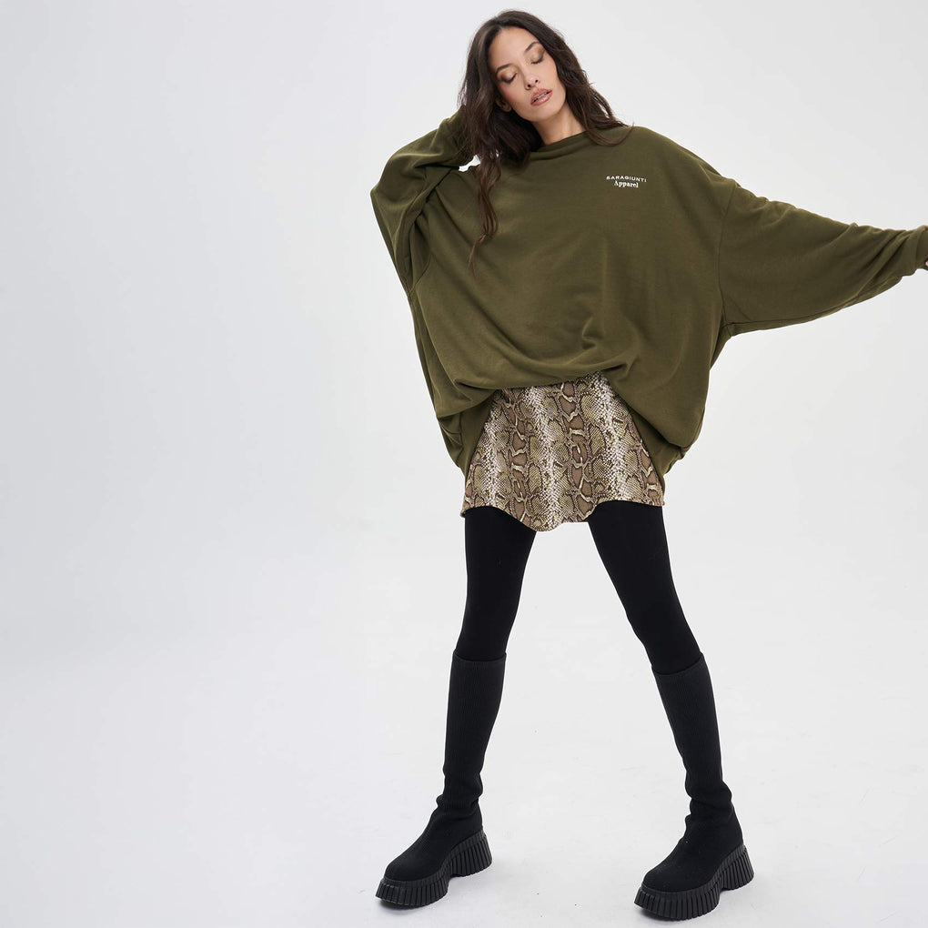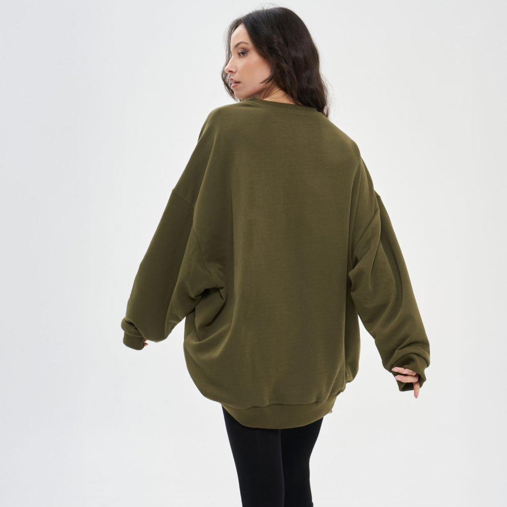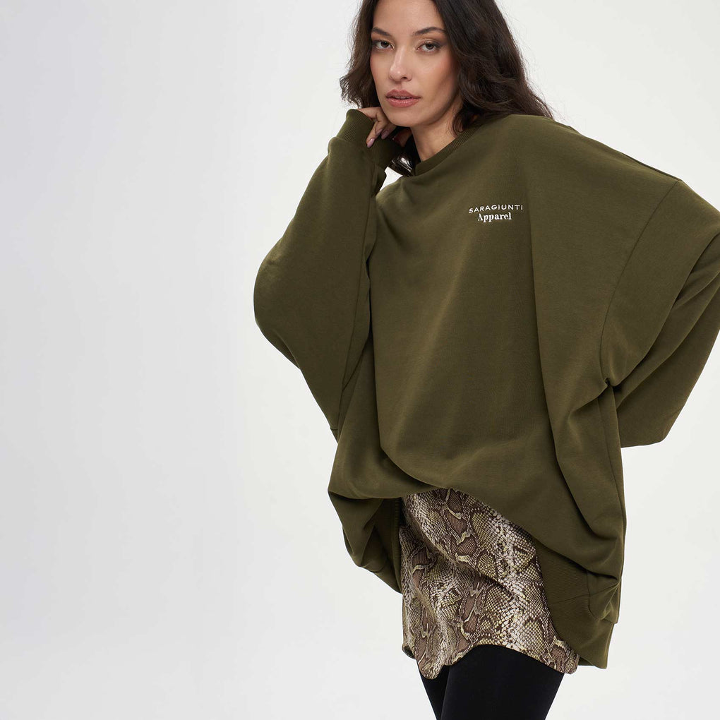 - FELPA Over Lunga Ricamo Verde Militare
