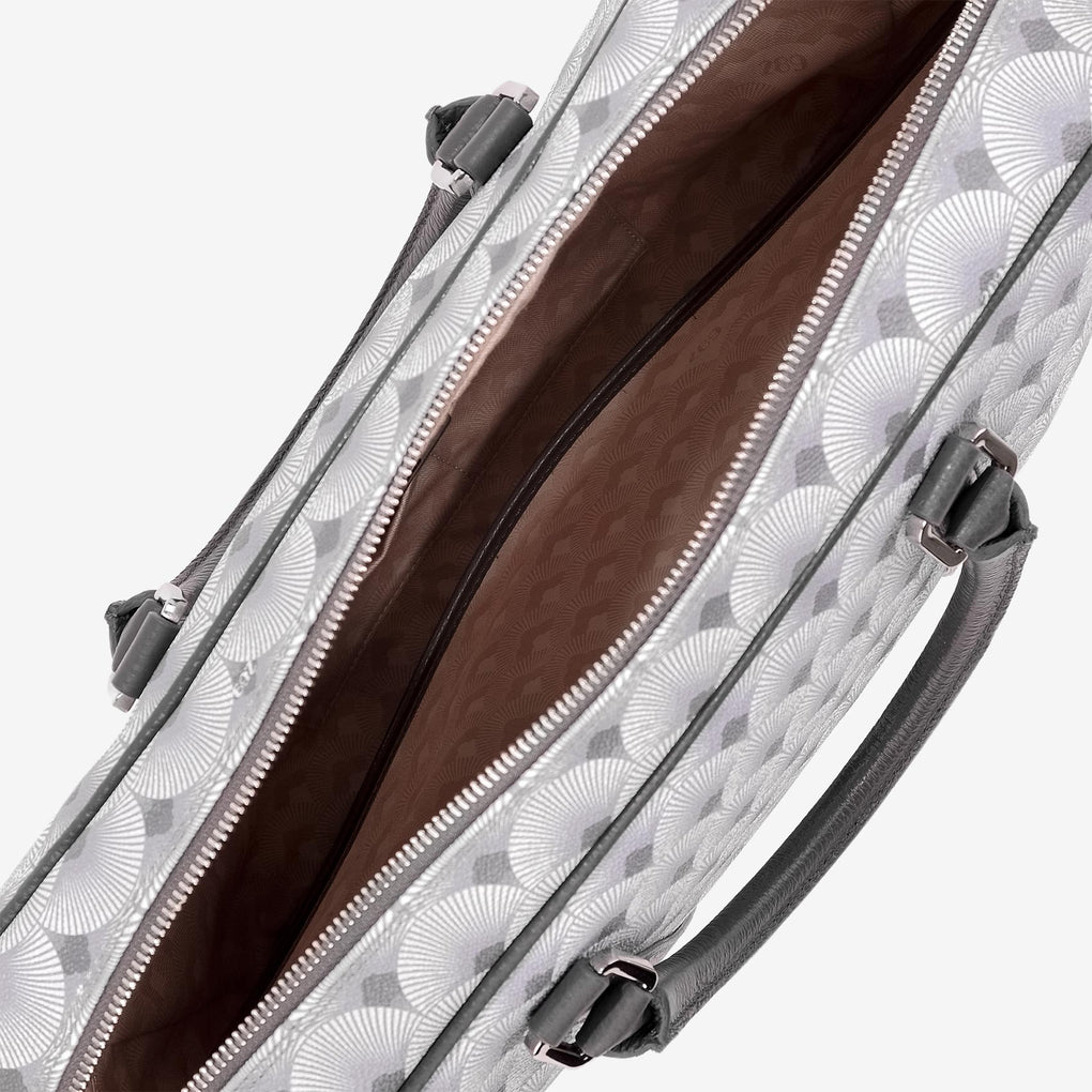 Mini bag da donna in raffinato canvas di cotone waterproof stampato con motivo 289 fan ispirato ai decori dell’art decò.Il modello iconico della collezione, pensata per seguirti ovunque e riporre gli oggetti essenziali di ogni giorno, versatile, sportiva e raffinata. ...