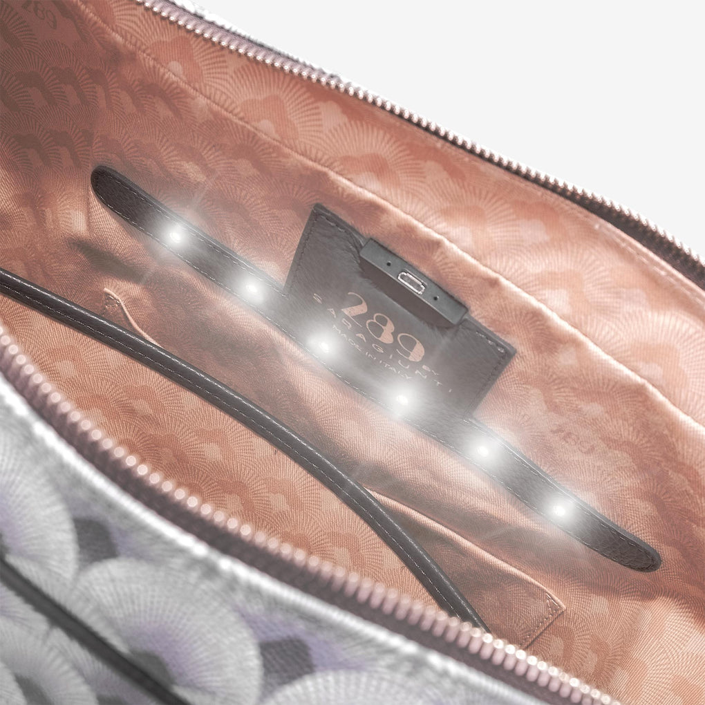 Belt Bag da donna in raffinato canvas di cotone waterproof stampato con motivo 289 Fan, ispirato all’art Decò. Versatilità è la parola chiave grazie alla tracolla e al cinturino regolabile puoi indossarla in vita, sulla spalla o in stile cross-body. Semplicemente...
