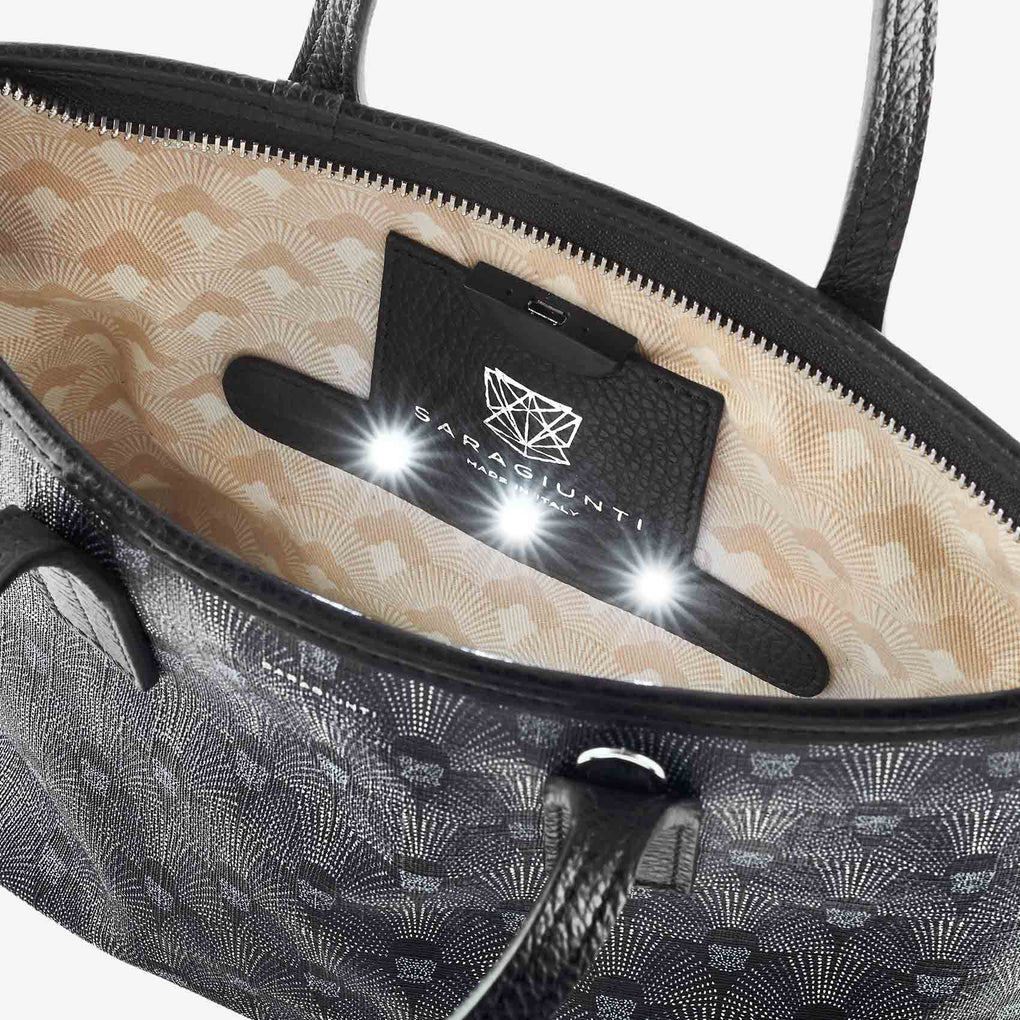 Mini bag da donna in raffinato canvas di cotone waterproof stampato con motivo 289 fan ispirato ai decori dell’art decò.Il modello iconico della collezione, pensata per seguirti ovunque e riporre gli oggetti essenziali di ogni giorno, versatile, sportiva e raffinata. ...
