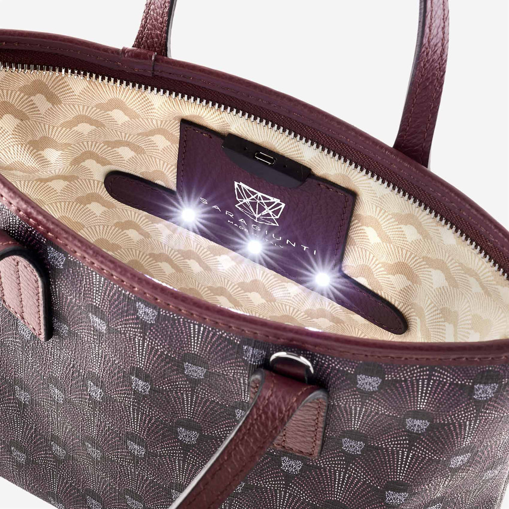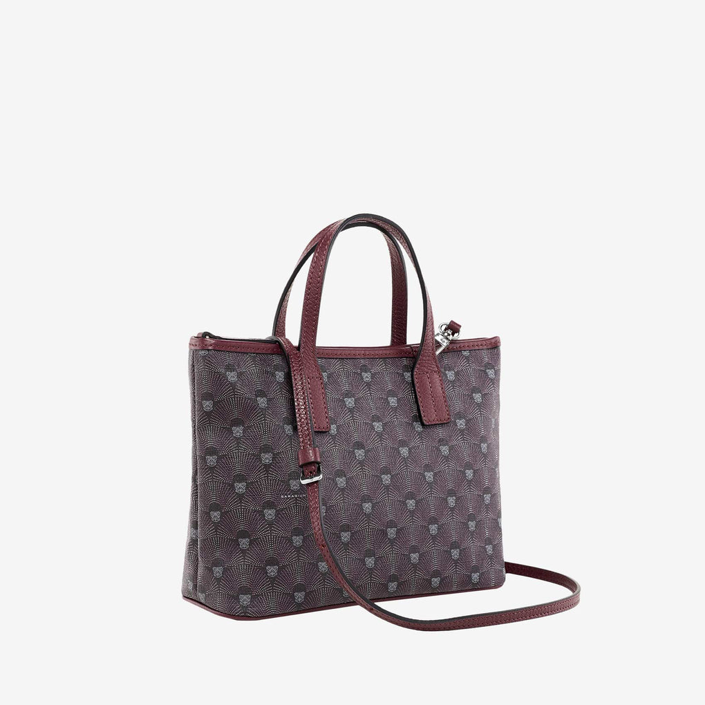 Mini bag da donna in raffinato canvas di cotone waterproof stampato con motivo 289 fan ispirato ai decori dell’art decò.Il modello iconico della collezione, pensata per seguirti ovunque e riporre gli oggetti essenziali di ogni giorno, versatile, sportiva e raffinata. ...