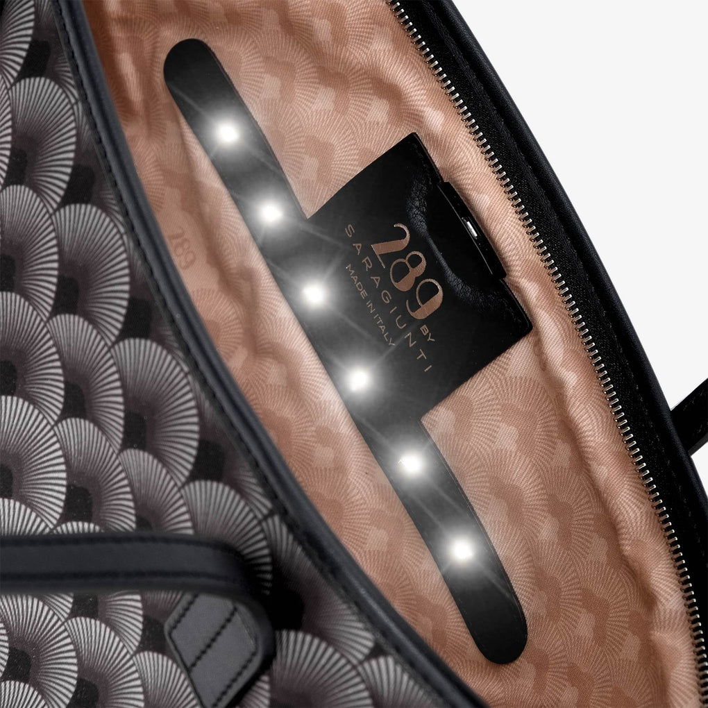 Mini bag da donna in raffinato canvas di cotone waterproof stampato con motivo 289 fan ispirato ai decori dell’art decò.Il modello iconico della collezione, pensata per seguirti ovunque e riporre gli oggetti essenziali di ogni giorno, versatile, sportiva e raffinata. ...