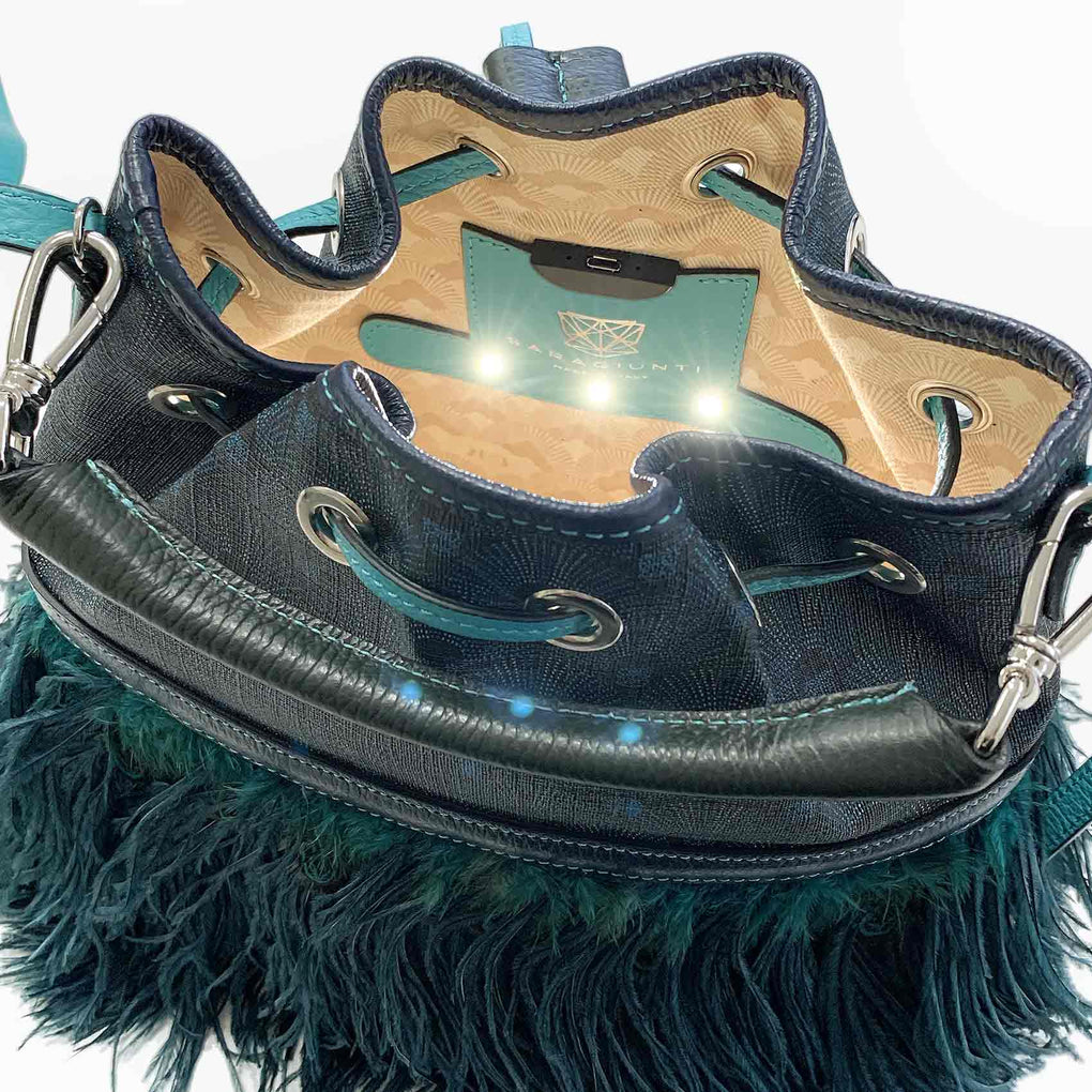 Mini bag da donna in raffinato canvas di cotone waterproof stampato con motivo 289 fan ispirato ai decori dell’art decò.Il modello iconico della collezione, pensata per seguirti ovunque e riporre gli oggetti essenziali di ogni giorno, versatile, sportiva e raffinata. ...