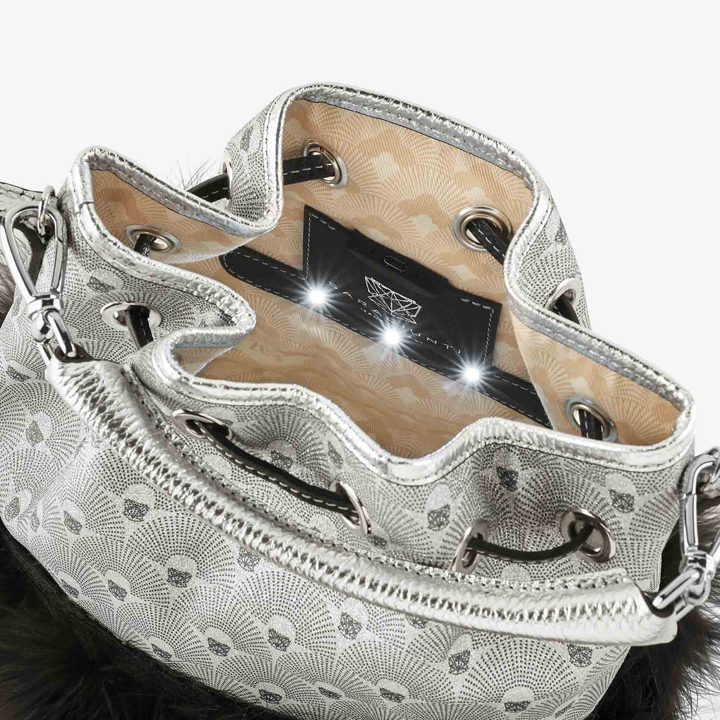 - Nadine Small SG Monogram Glitter and Feathers Silver