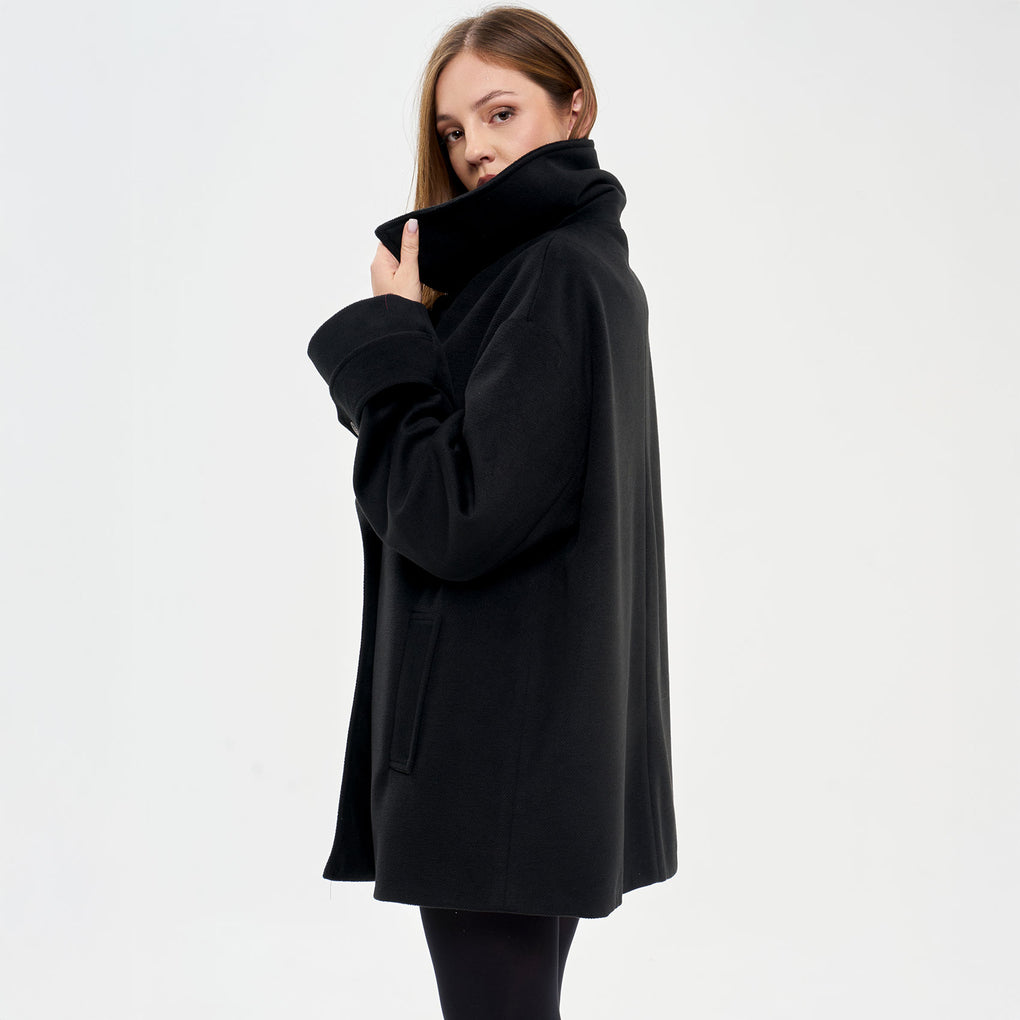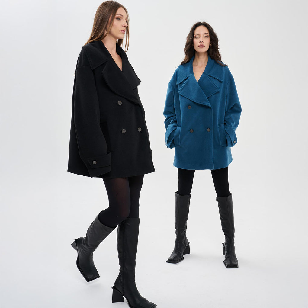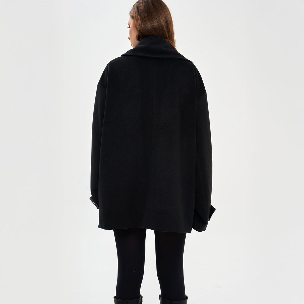 Il cappotto stile maxi camicia è caratterizzato da un colletto classico, maniche lunghe con spalla scesa e polsino, tasche sul décolleté e orlo inferiore stondato. Pratico ma sempre in linea con le tendenze.