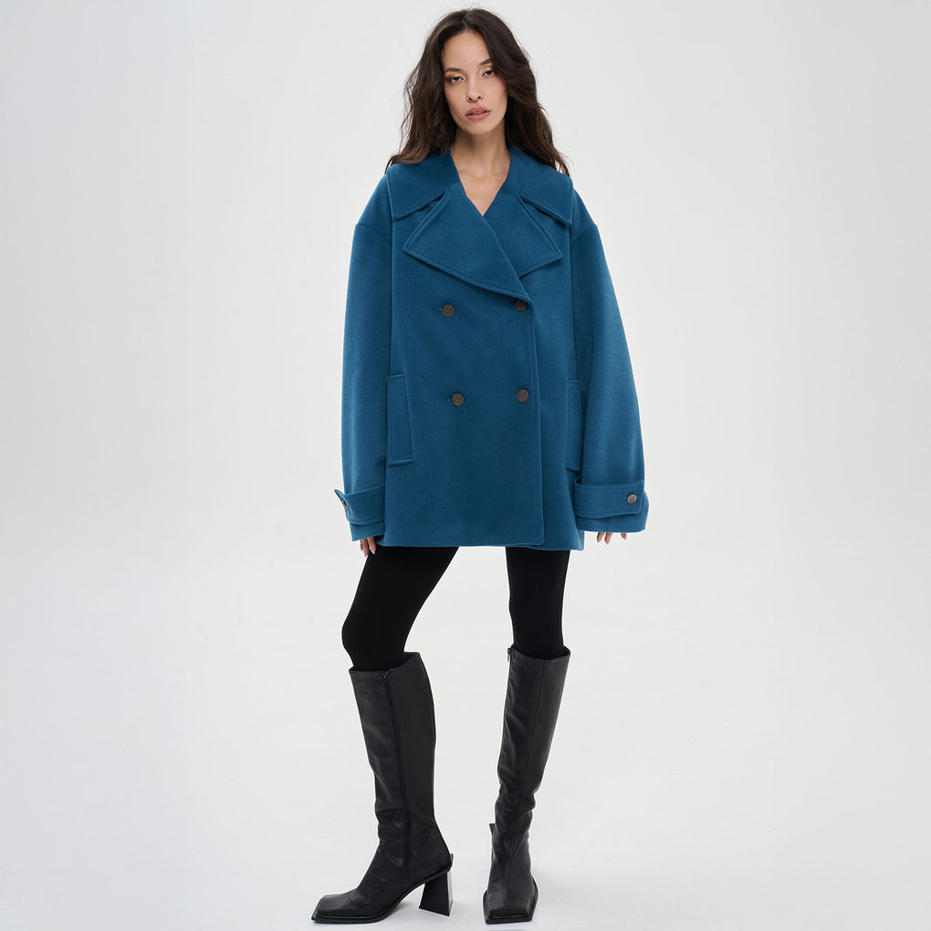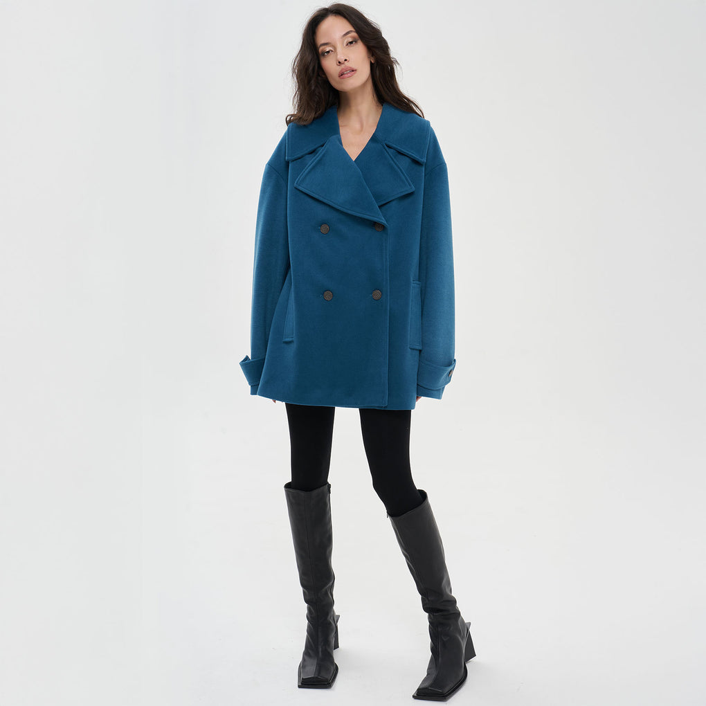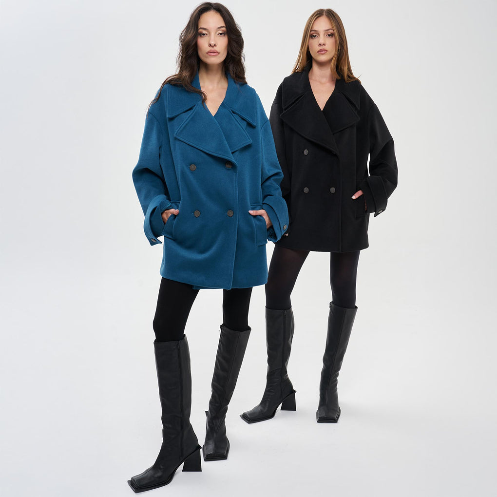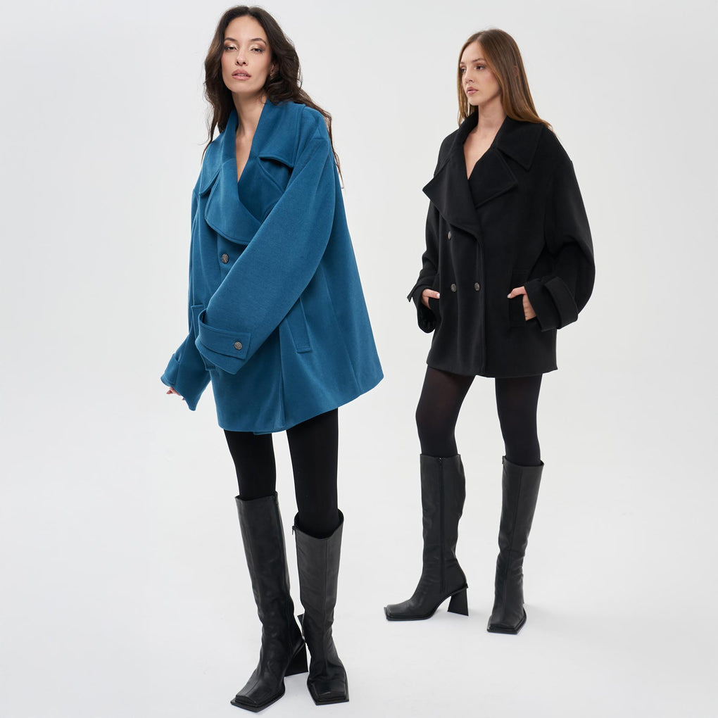 Il cappotto stile maxi camicia è caratterizzato da un colletto classico, maniche lunghe con spalla scesa e polsino, tasche sul décolleté e orlo inferiore stondato. Pratico ma sempre in linea con le tendenze. Morbido cashmereTinta unitaDoppiopettoTasche laterali Made in italy