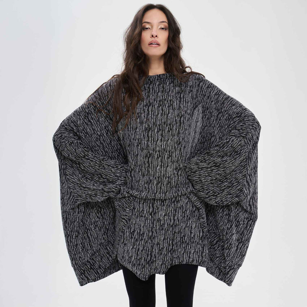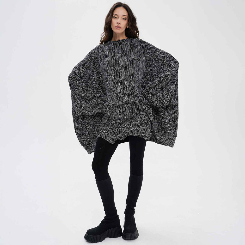 The knit sweatshirt is not only the most fashionista item of clothing but also the most versatile one. Oversized fit with contemporary style will complete your many looks giving it that sophisticated and fashionable air. Structured oversized fitDetails shoulder straps...