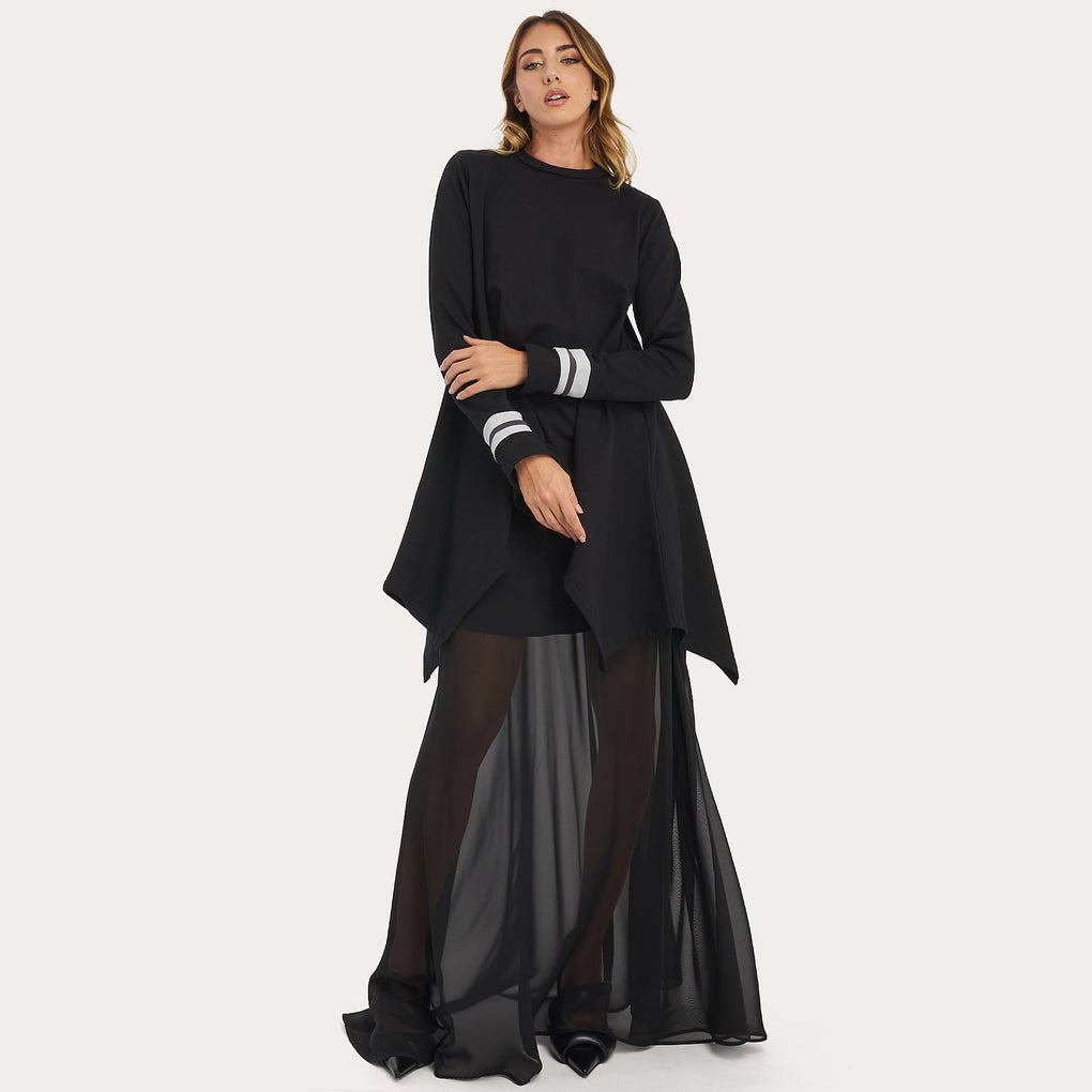 The over t-shirt is the ideal ally for having the right sporty and chic together; tailored and minimal. Structured cut overGinko patch on frontLonger back Rounded neck, long sleeve Made in Italy