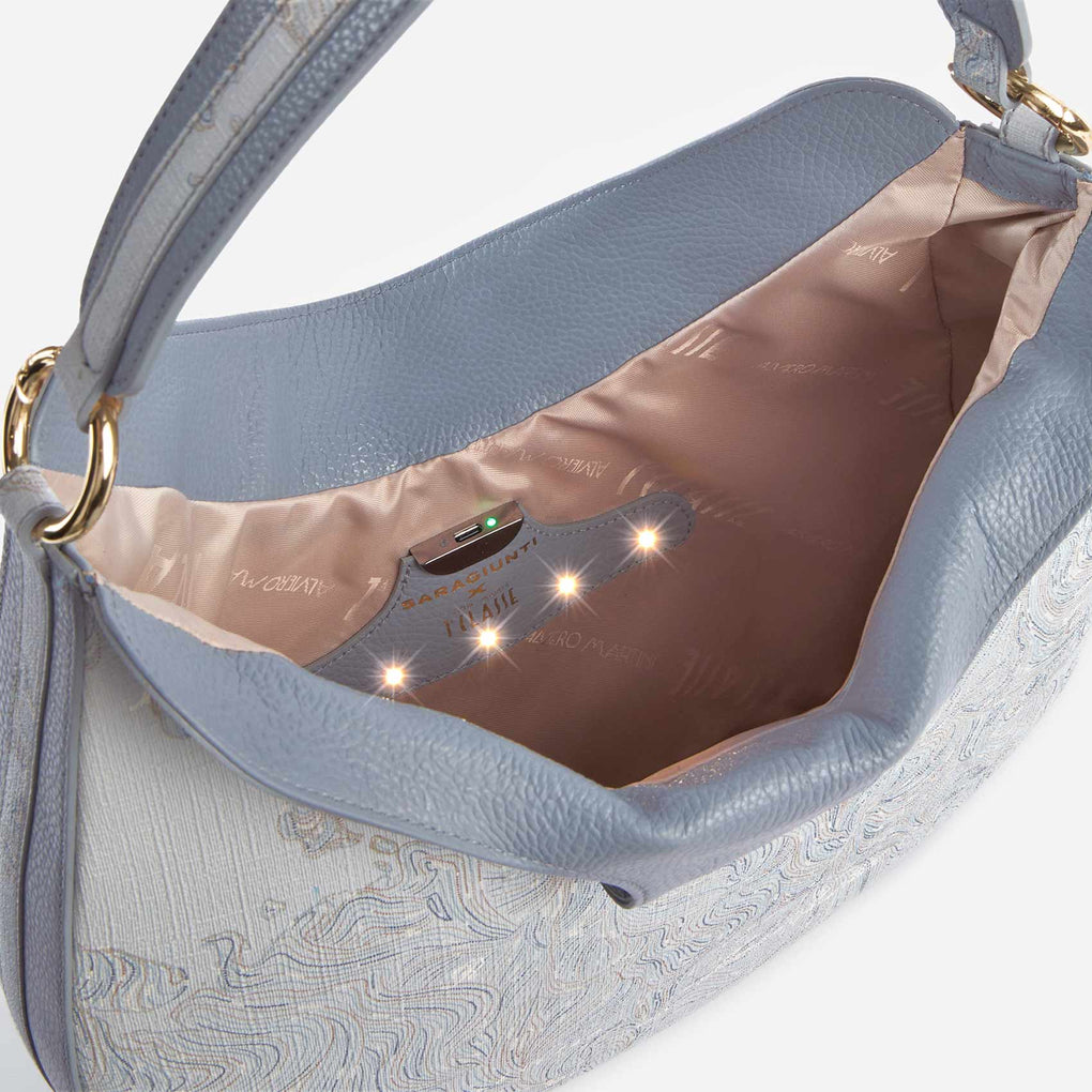 The iconic elegance of 1ᴬ Classe and the fashion-tech soul of Saragiunti meet in this small hobo bag. Smooth nappa leather gives it a fine, minimal and versatile look, embellished with the 1ᴬ Classe x Saragiunti logo and the metal...