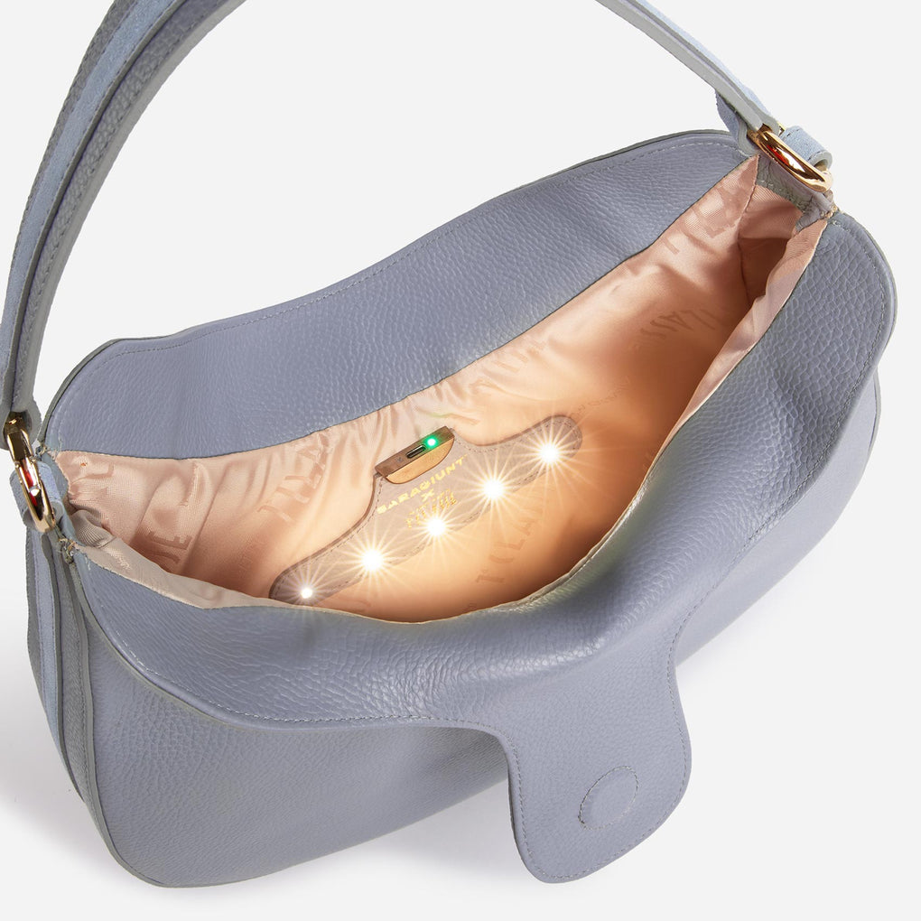 The iconic elegance of 1ᴬ Classe and the fashion-tech soul of Saragiunti meet in this large hobo bag. Smooth nappa leather gives it a fine, minimal and versatile look, embellished with the 1ᴬ Classe x Saragiunti logo and the metal...
