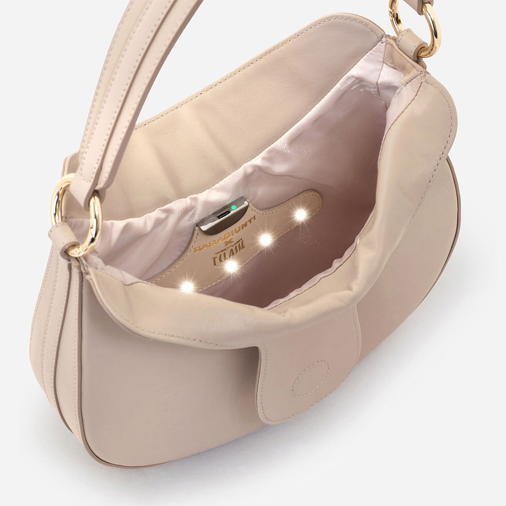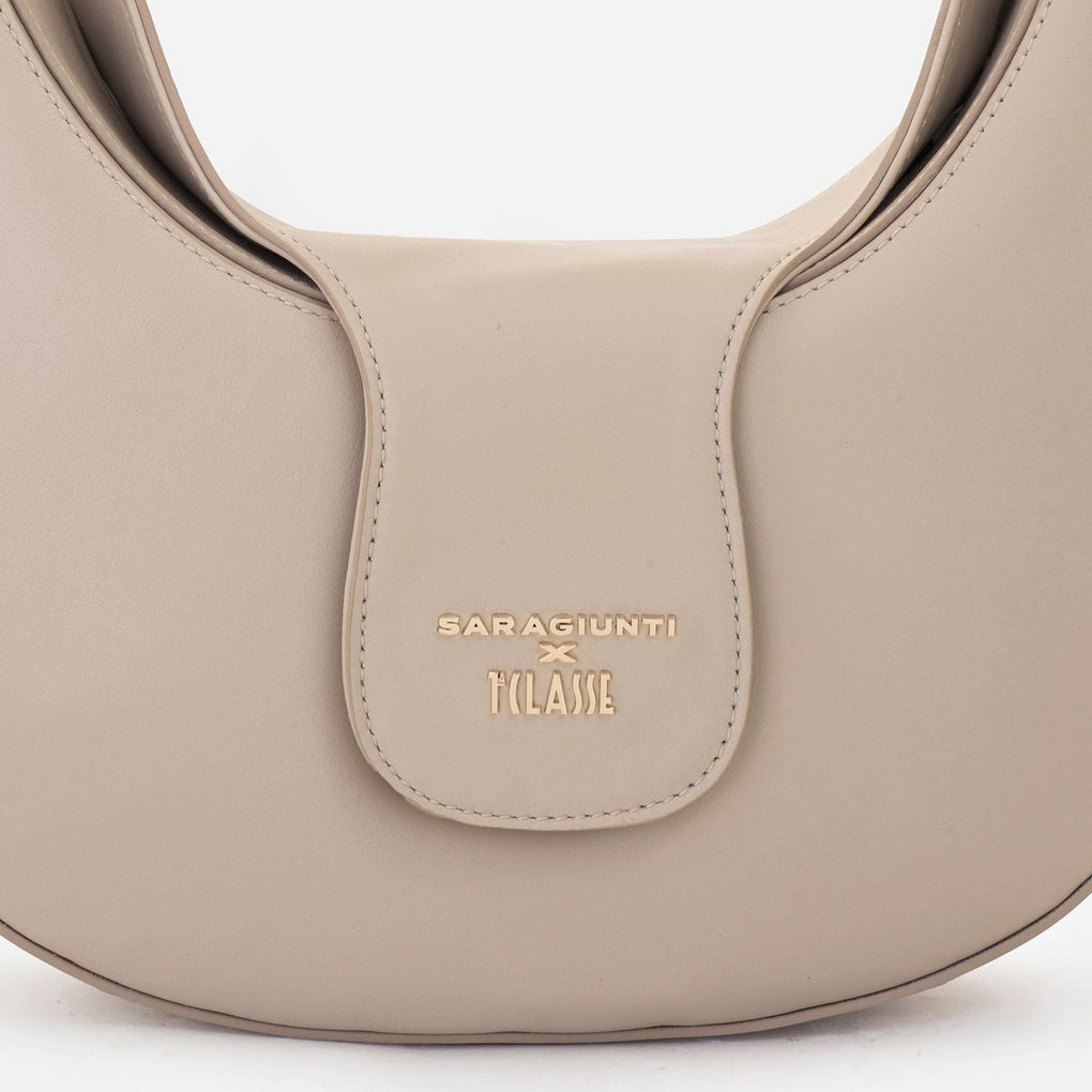 The iconic elegance of 1ᴬ Classe and the fashion-tech soul of Saragiunti meet in this small hobo bag. Smooth nappa leather gives it a fine, minimal and versatile look, embellished with the 1ᴬ Classe x Saragiunti logo and the metal...